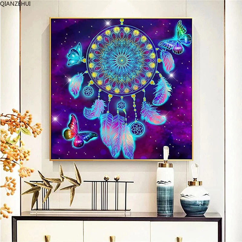 QIANZEHUI, алмазная 5D Вышивка своими руками, Круглый Алмаз Ловец снов полная Стразы 5D алмазная живопись вышивка крестиком
