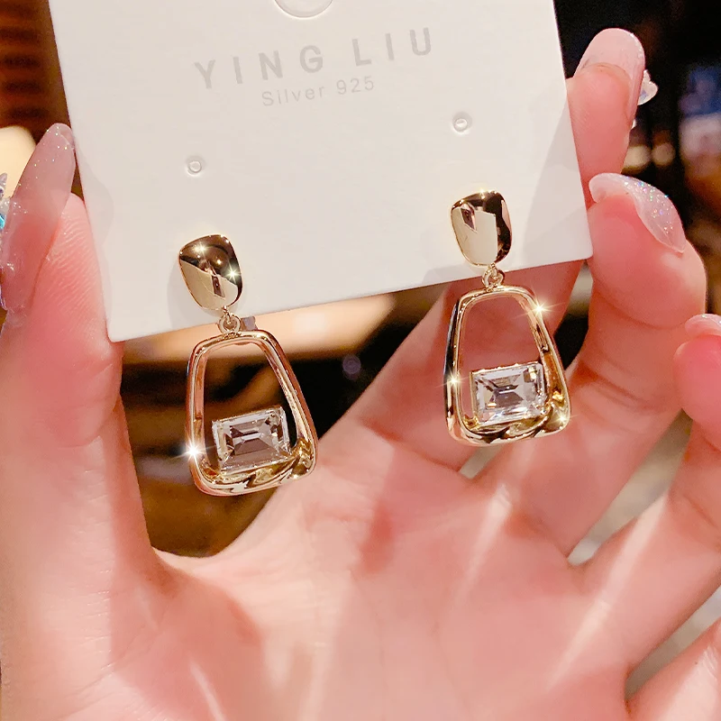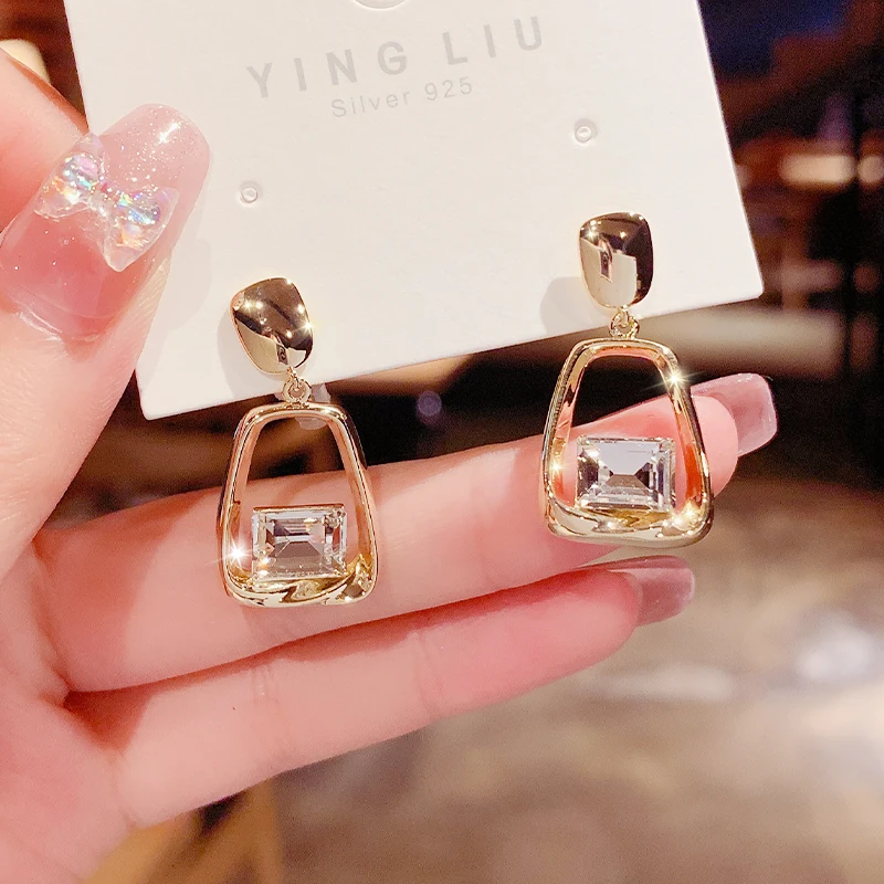 Новинка, висячие серьги-подвески для женщин, простые модные квадратные серьги с бриллиантами, корейская мода, подарок на день рождения, бижутерия