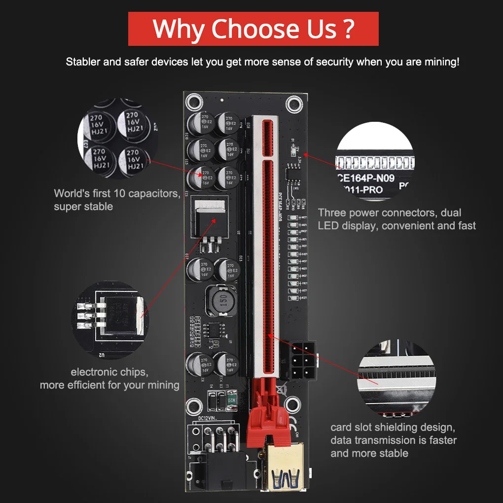 10 шт. PCIE Riser 011 V011 Pro PCI-E PCI E Express Card GPU 1X к X16 6pin адаптер кабель Riser для видеокарты Super Type