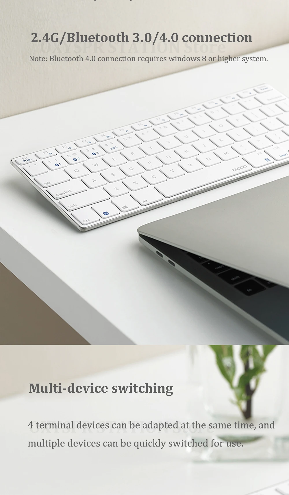 1. Соединение 2,4G/Bluetooth: поддержка Bluetooth 4,0/3,0/беспроводное соединение 2,4G. Примечание: для подключения Bluetooth 4,0 требуется windows 8 или более высокая система.
