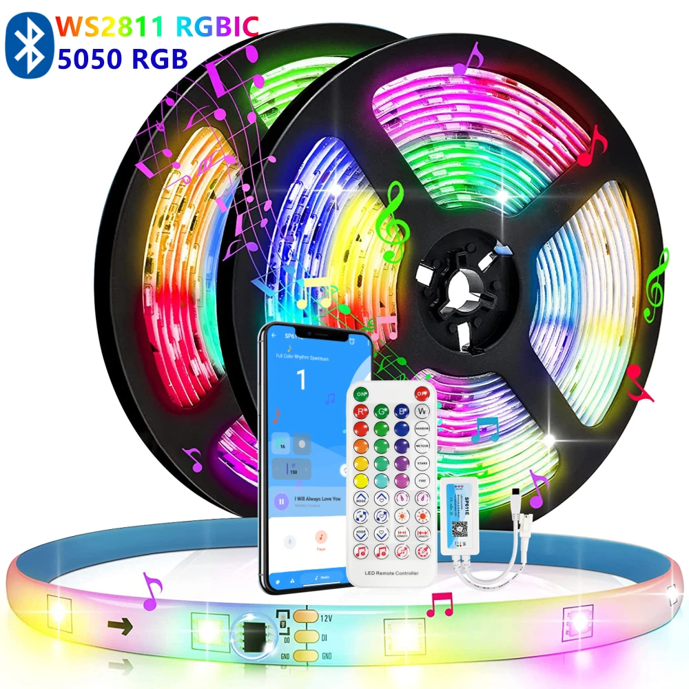 Светодиодная лента RGBIC Dreamcolor 5050 RGB WS2811, водонепроницаемая, 15 м, 20 м, 30 м, пульт дистанционного управления Bluetooth, программируемая, Rainb