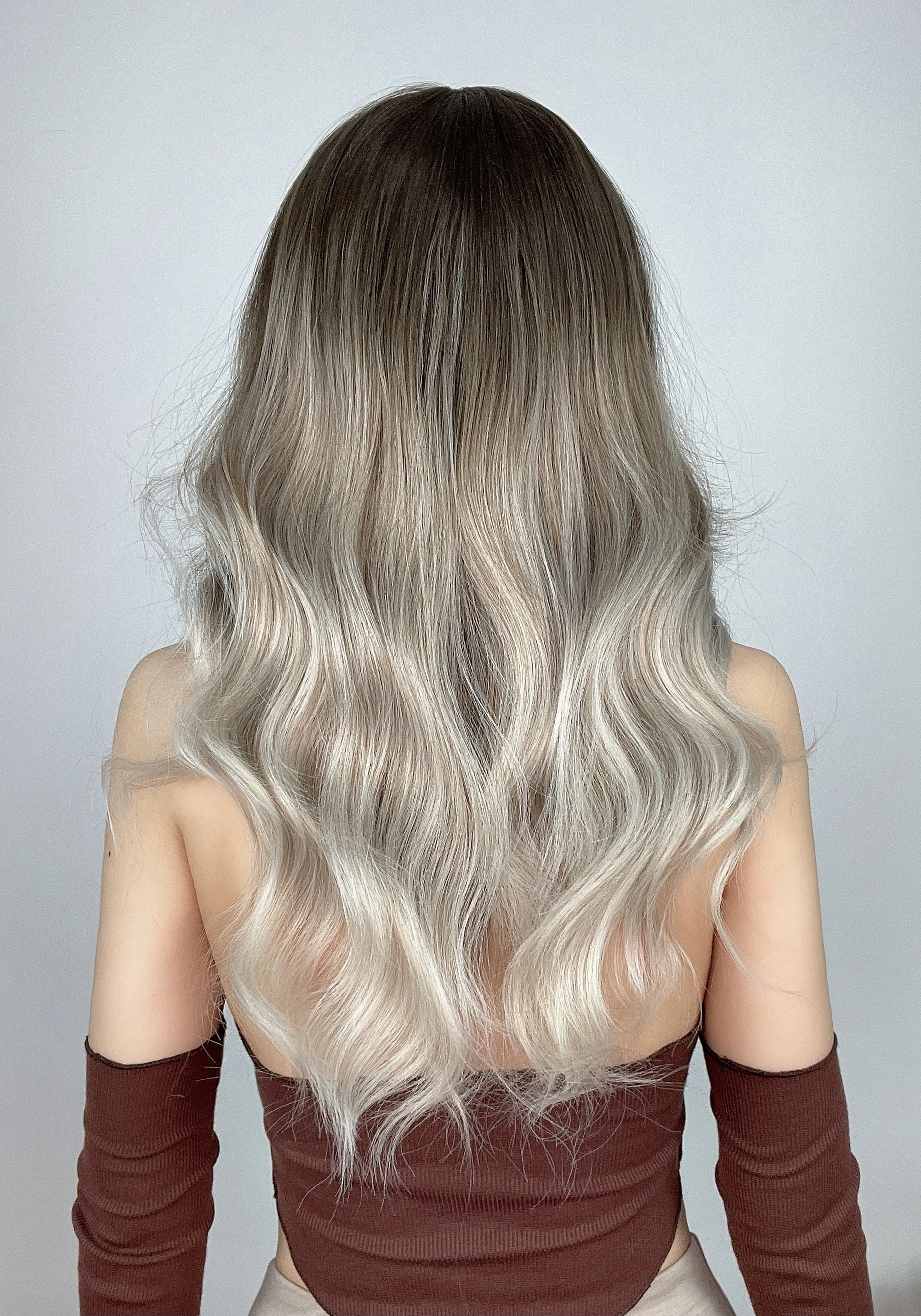 Парик светлый Element с темными корнями и эффектом омбре, с челкой,...