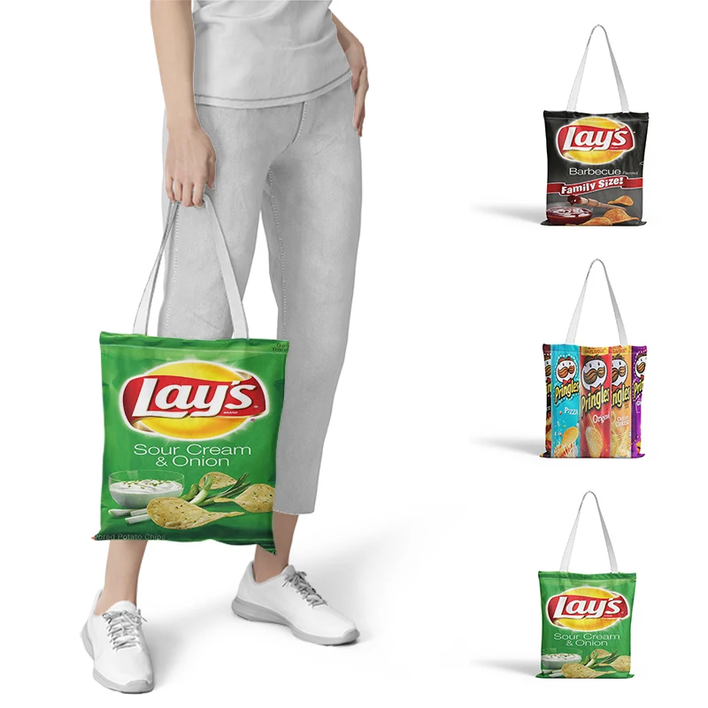 Сумка-тоут для покупок с принтом картофельных чипсов, холщовая муль...