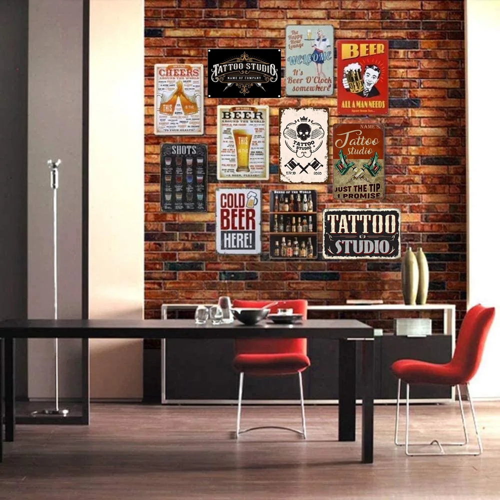 ВИНТАЖНЫЙ ПЛАКАТ, тату-студия, название компании, жестяная металлическая пластина для украшения стен в винтажном стиле, бара, паба, кафе