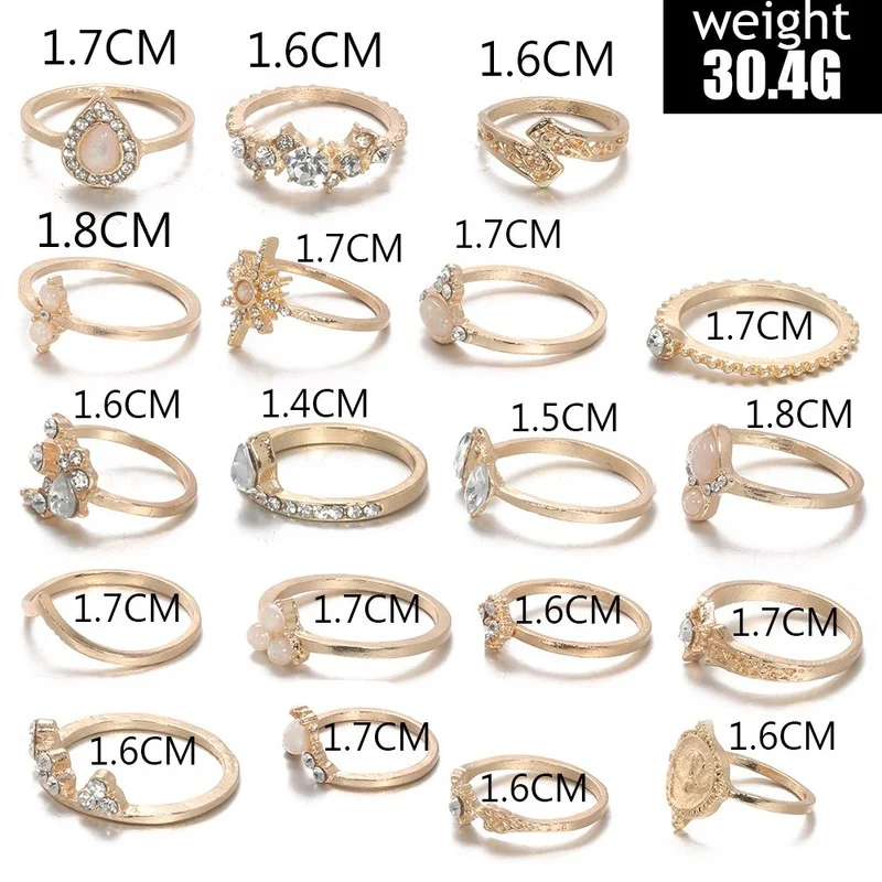 19 шт.компл. богемное Золотое кольцо, солнце, значок, капля воды, сияющий кристалл, камень, геометрия, подарок для женщин