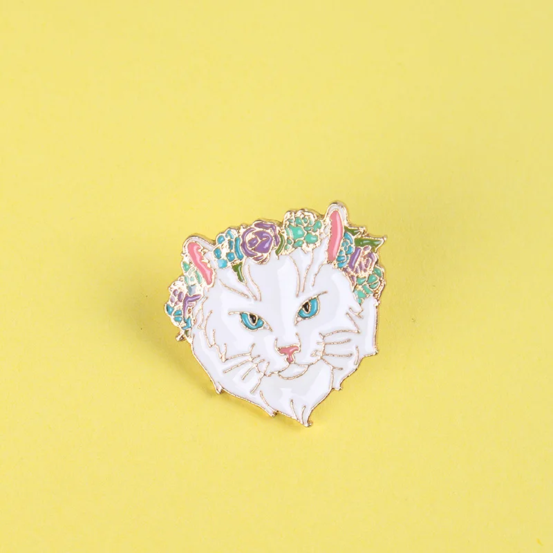 Милая и красивая белая брошь в виде кошки, булавка в виде короллы розы, украшение для сумки, оптовая продажа аксессуаров, подарок для друзей