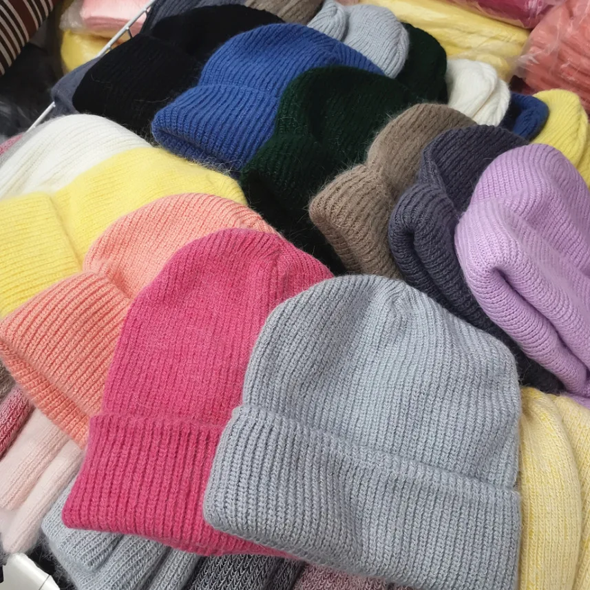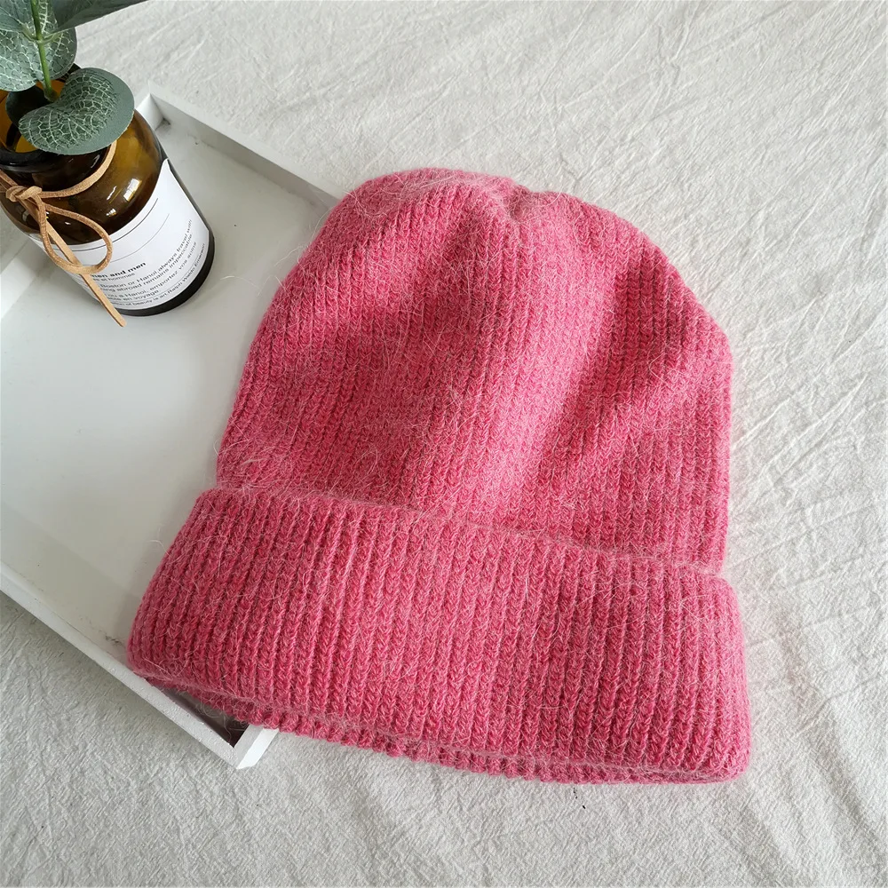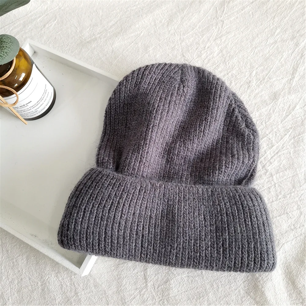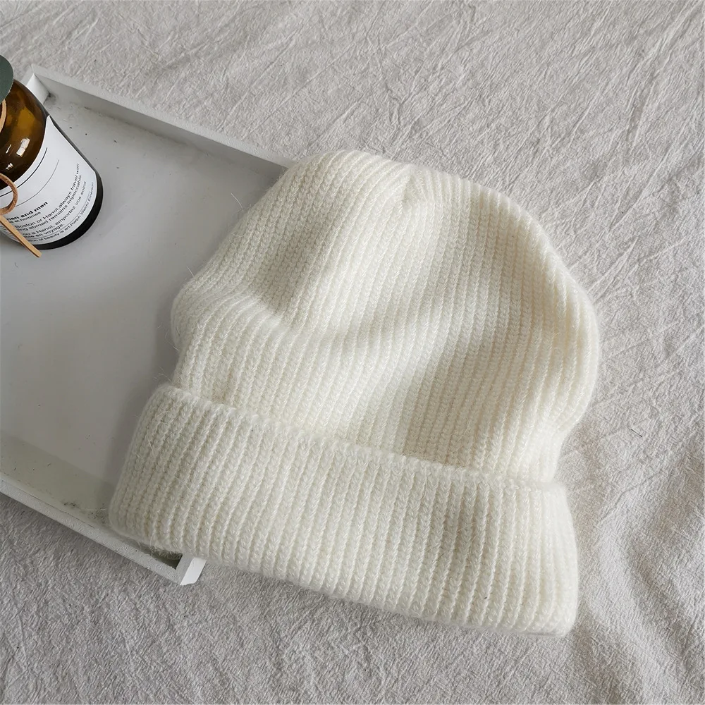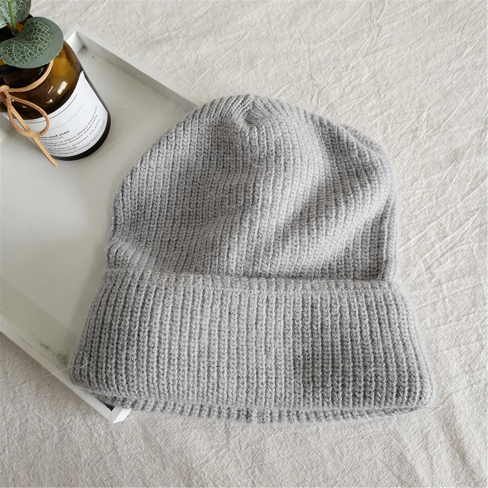 Женская зимняя шапка из шерсти кролика однотонная Корейская версия универсальная простая теплая вязаная шапка защита для ушей для студентов и мужчин