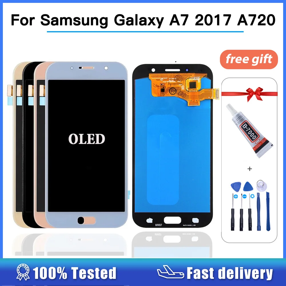 100% протестированный OLED ЖК-дисплей для Samsung Galaxy A7 2017 A720 A720F A720M, ЖК-дисплей с сенсорным экраном и дигитайзером в сборе, Замена ЖК-дисплея