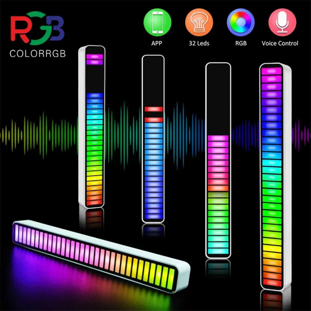 RGB-управление звуком, музыкальный ритм, светильник щение, красочная Голосовая активация, фотография с 32 светодиодный одами, настольное освесветильник для автомобиля, управление через приложение