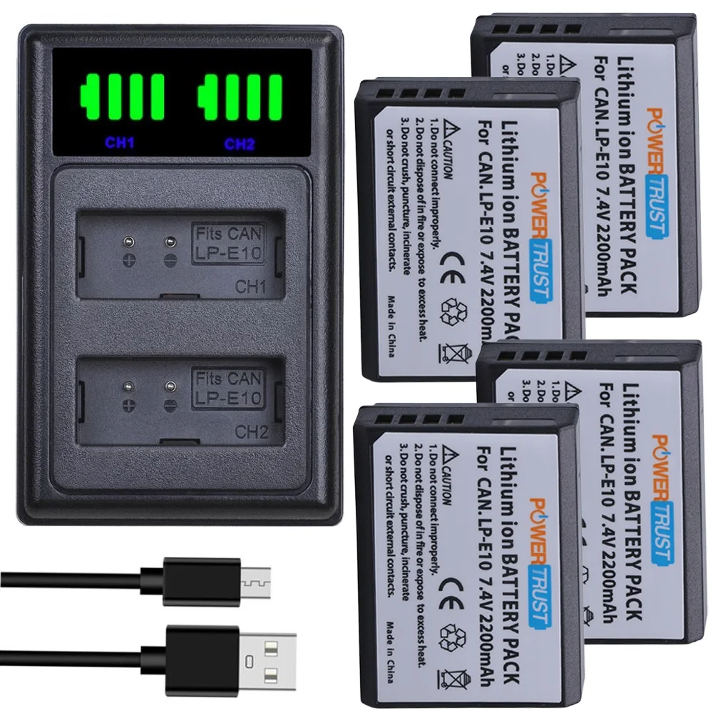 Аккумулятор LP-E10 и двойное зарядное устройство для Canon EOS Rebel T6, T7, T3, T5,Kiss X50, Kiss X70, EOS 1100D, EOS 1200D, EOS 1300D 2000D