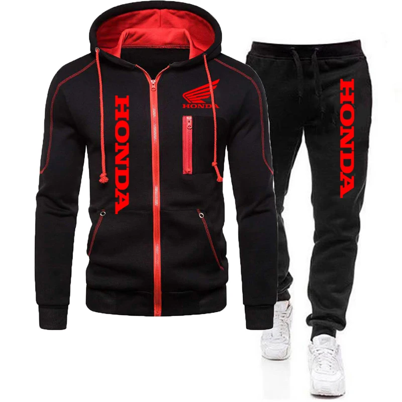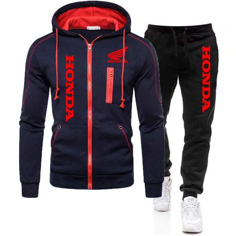 Новинка 2022, мужской спортивный костюм с логотипом Honda, свитшот на молнии с капюшоном и брюки, комплект из 2 предметов, спортивный костюм для бега и фитнеса, мужская спортивная одежда