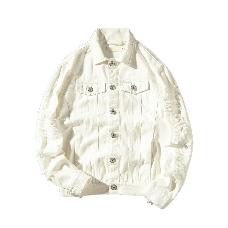Мужская приталенная джинсовая куртка, красная, белая, черная рваная джинсовая куртка с дырками, верхняя одежда для осени, 2021