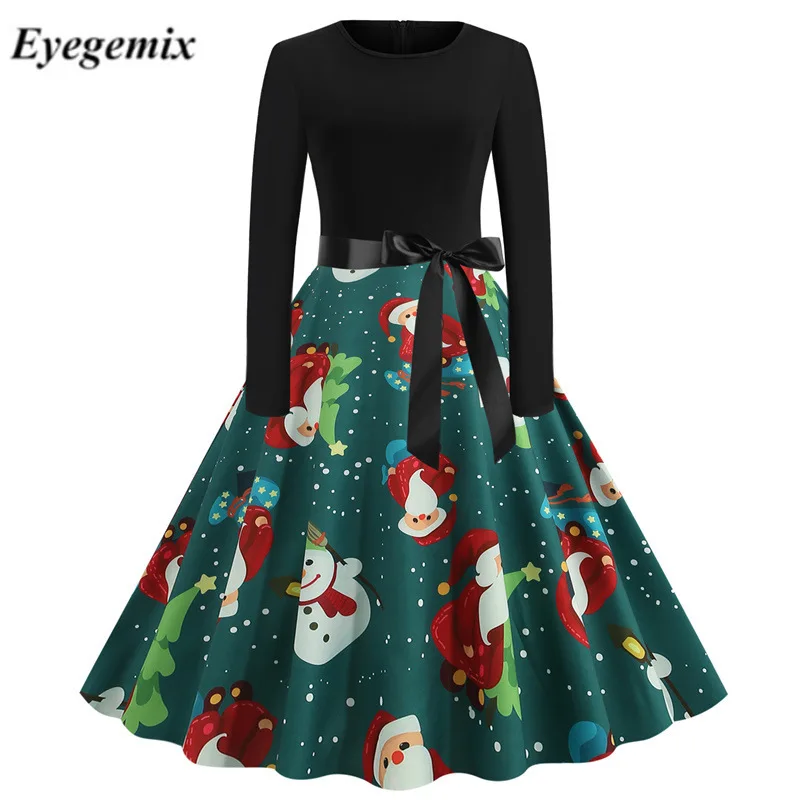 Зеленое рождественское платье, рождественское платье с принтом в стиле 1920-х годов, вечернее вечерние ничное платье, элегантный винтажный костюм на новый год 1950, женские зимние платья