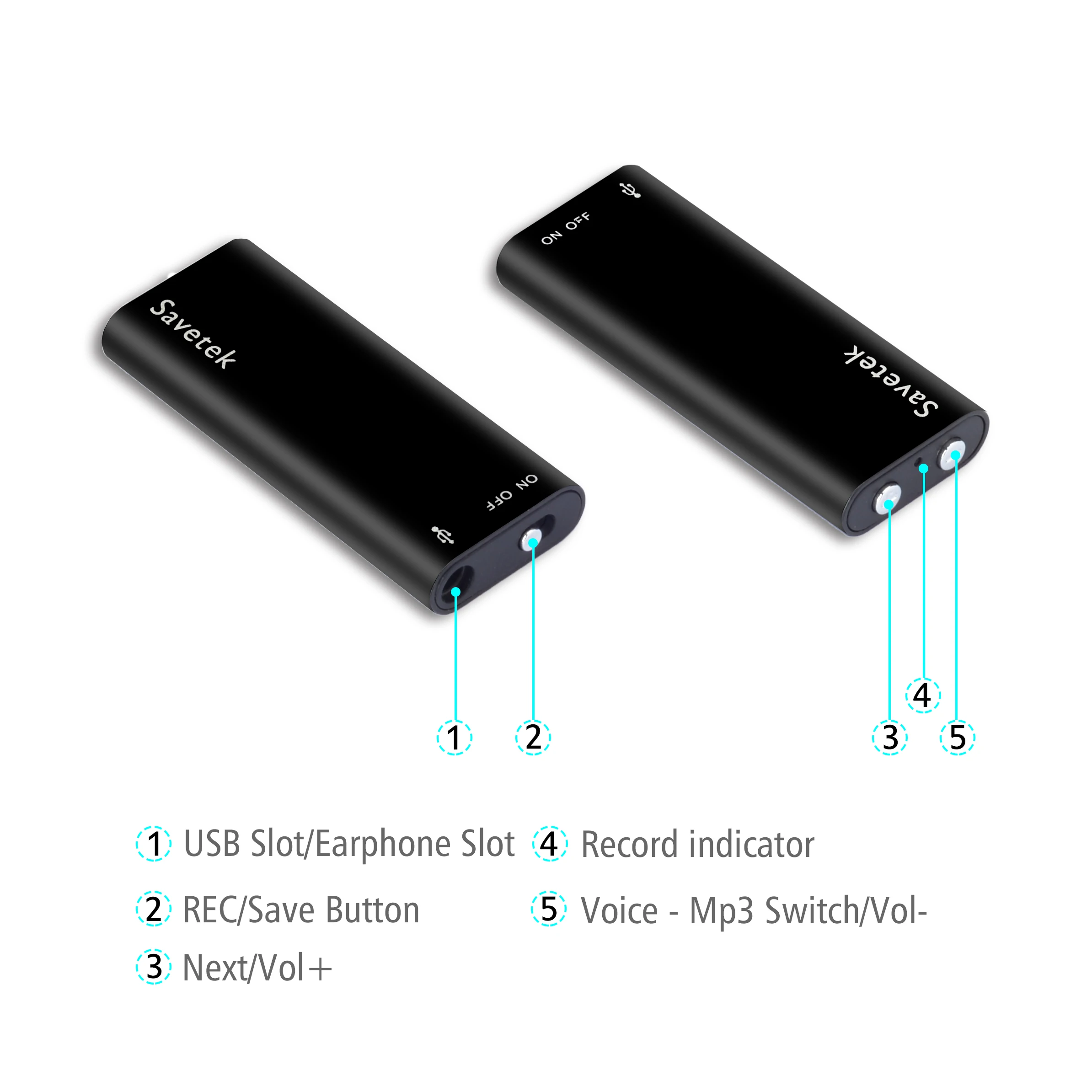 Запись с голосовым включением: установите его и забудьте об этом, он начнет запись при обнаружении звука, приостановите звук, автоматическое сохранение при низком заряде батареи. (Он не может питаться от голоса, все еще нужно перемещать кнопку питания на положение и установить его модель VOR)