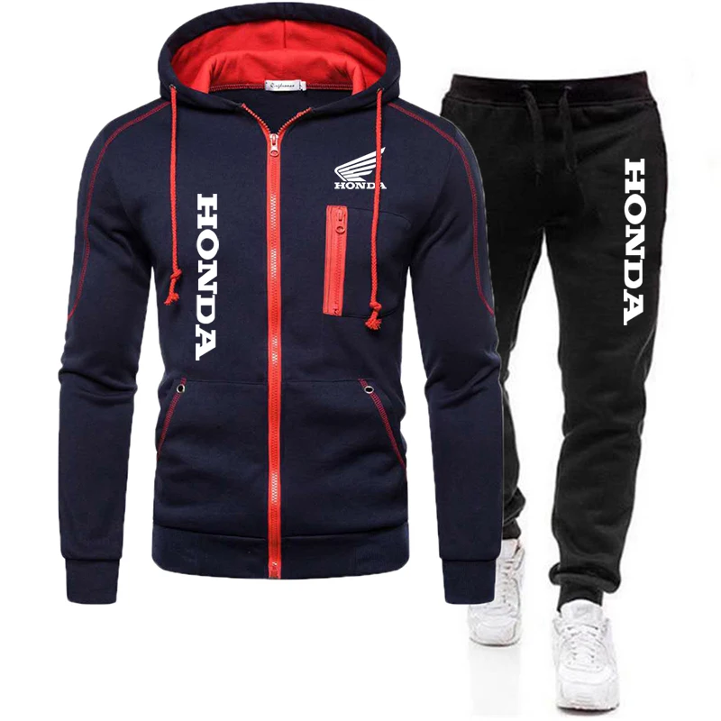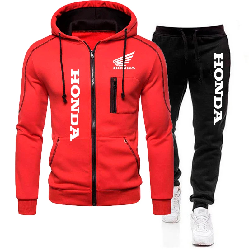 Осень 2021, мужской спортивный костюм Honda с принтом "крылья", Свитшот на молнии с капюшоном, пуловер и брюки, спортивный костюм для бега и фитнеса, мужская спортивная одежда
