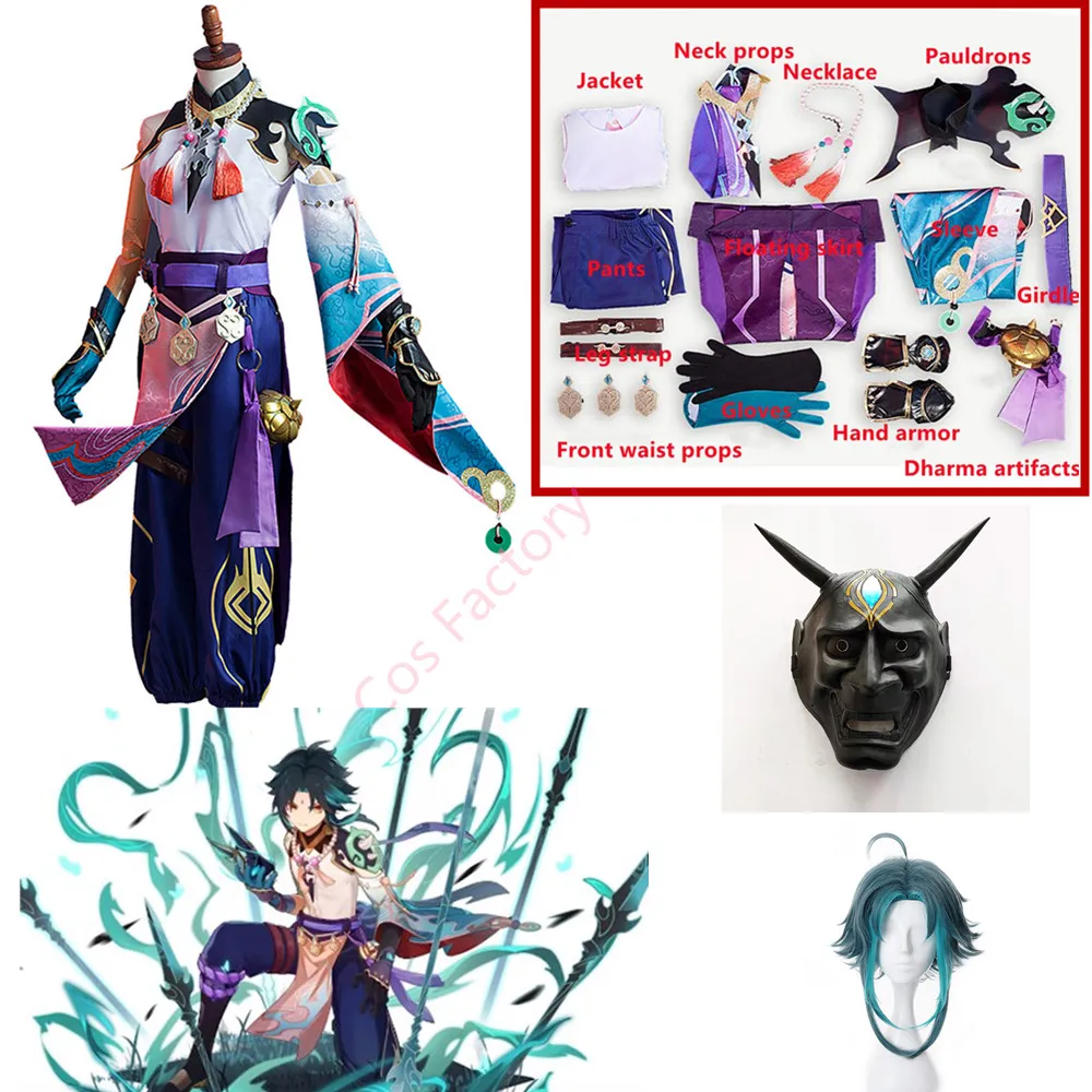 Genshin ударная Аниме игра косплей Xiao костюм парик маска для мужчин
