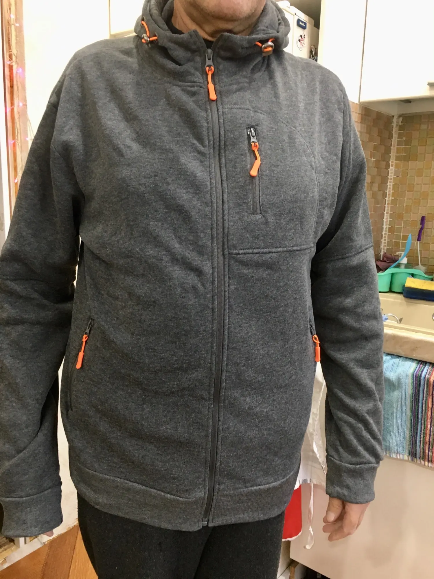 Толстовка неплохая за свои деньги. покупал на распродаже со скидкой и купоном от Али за 650₽. В принципе это её нормальная цена, учитывая что верх не плотная ХБ-шка, как я ожидал, а трикотажная синтетика, на которой будут оставаться затяжки от малейших заусенцев на коже пальцев или ногтях... Это, в прочем, единственный минус для меня, в целом толстовка красивая, сшита ровно, сидит хорошо. Есть три кармана и капюшон, довольно теплая, хотя по сравнению с простейшей однослойной флиской из Спортмастера за 700₽, показалась чуть холоднее. В общем за 700₽ нормальный вариант, а 1200 уже дороговато для неё. До Питера ехала 3 недели, доставили в ПВЗ СДЭК.