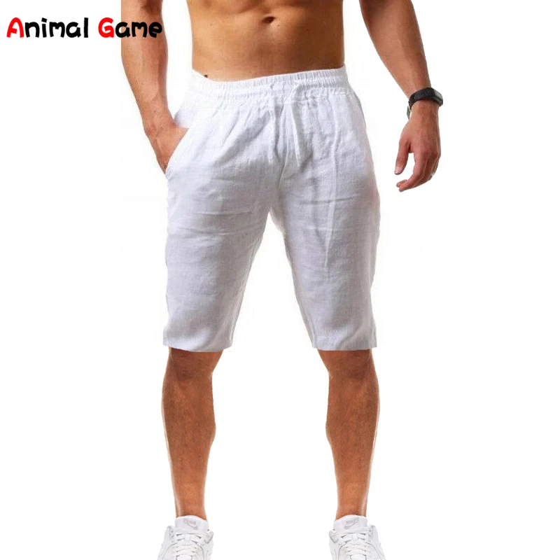 Шорты мужские из хлопка и льна, однотонные, дышащие, для фитнеса