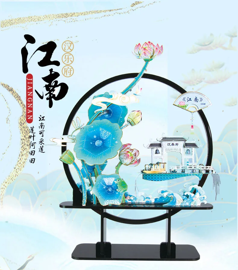 1 x картина царство китайской стихи архитектура PJ-246,PJ-247,PJ-248,PJ-249 3D DIY металлическая головоломка игрушка