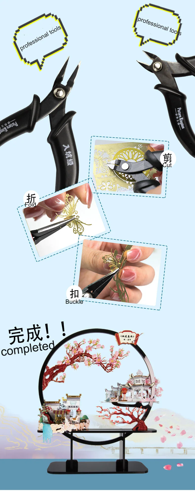 Картина Королевство китайская поэзия архитектура строгая самодельная 3D металлическая модель наборы нано-пазл Лазерная вырезка сборные джиги