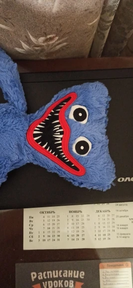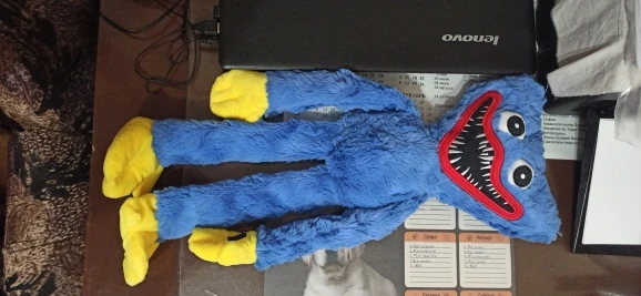 Довольно большой, на ощупь очень приятный. На руках липучки, так что его можно пристегивать к чему-то. Рожица жуткая, как и ожидалось.