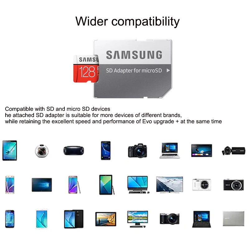 Оснащен широким спектром устройств для SD и micro SD. Вы даже можете снимать детальное видео 4K UHD. Использование адаптера SD подходит для большинства устройств всех брендов, сохраняя при этом высокую скорость и производительность EVO Plus.
