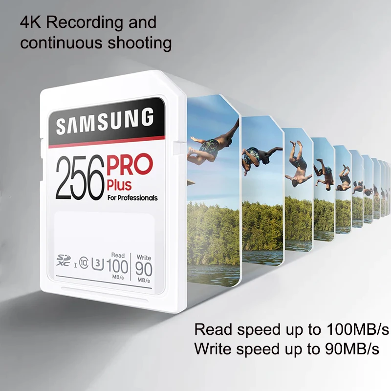 Запись и воспроизведение видео 4K UHD. Благодаря сверхбыстрой скорости чтения и записи до 100 МБ/с./с и 90 МБ/с./с соответственно 256 ГБ EVO Plus позволяет передавать видео 3 Гб на ноутбук всего за 38 секунд. * Снимайте высококачественные фотографии и видео и делитесь ими в одно мгновение.