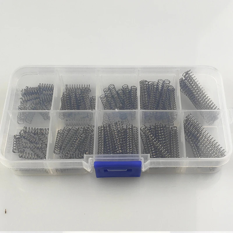 100 шт.лот металлическая сталь в ассортименте с коробкой для хранения аксессуаров удлинитель и компрессионная катушка портативный инструмент набор пружин