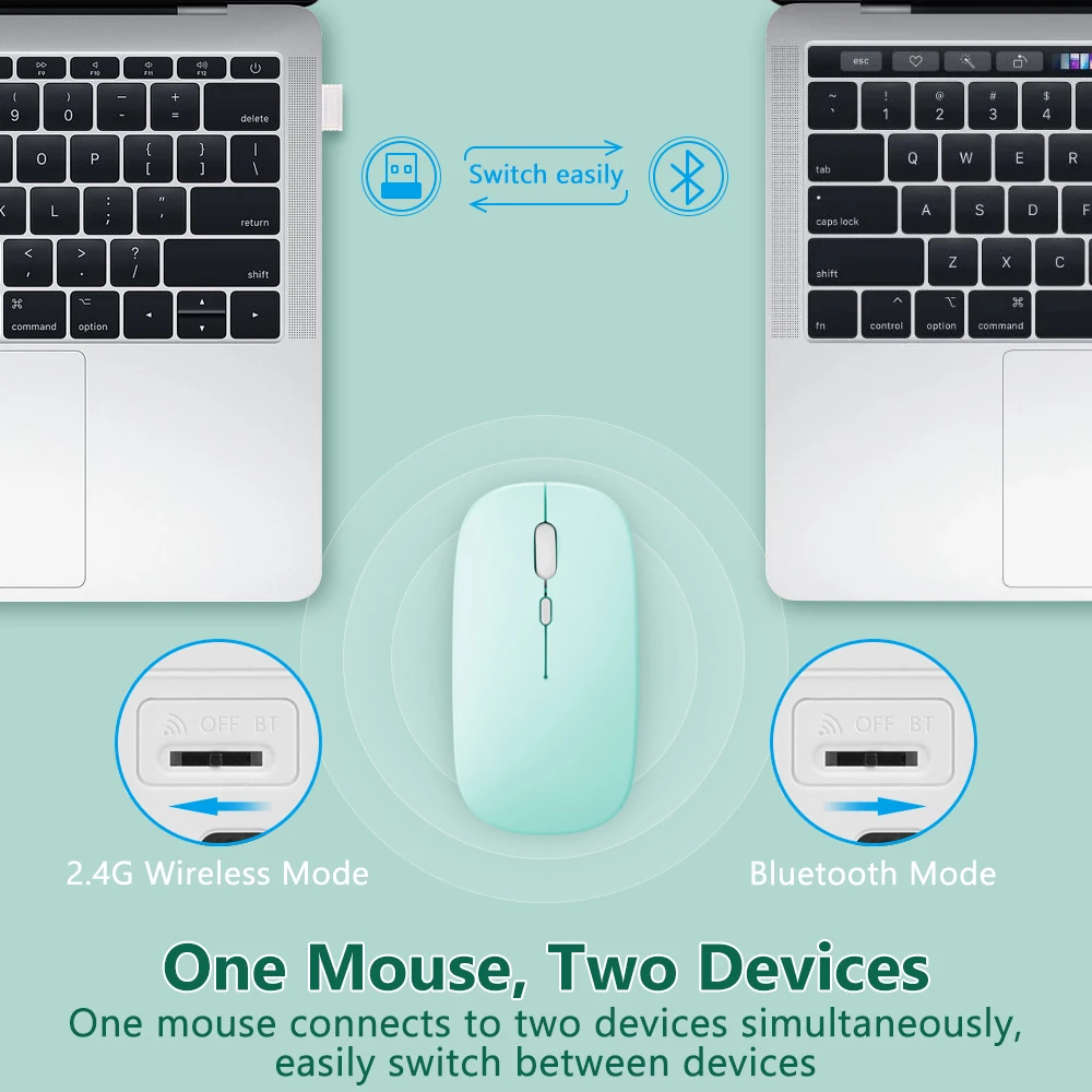 Перезаряжаемая Беспроводная Bluetooth-мышь для компьютера, ПК, iPad, мышь с двумя режимами, Bluetooth + USB беспроводная мышь, 3 режима, Регулируемый DPI