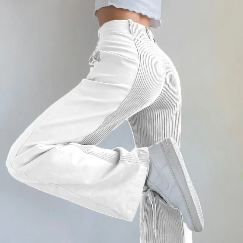 Брюки женские вельветовые прямые с широкими штанинами и высокой талией