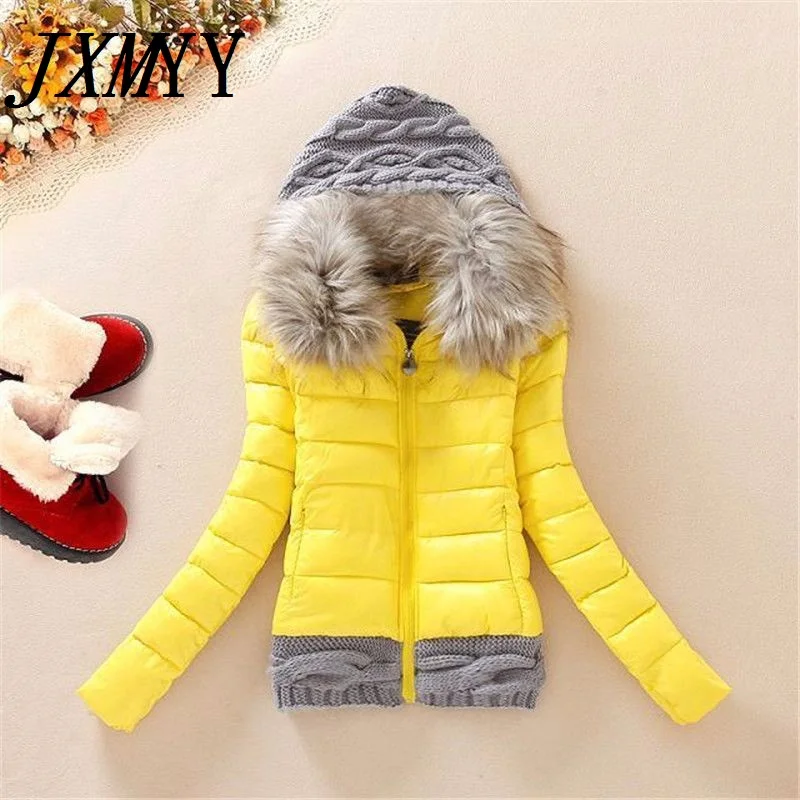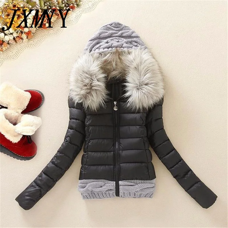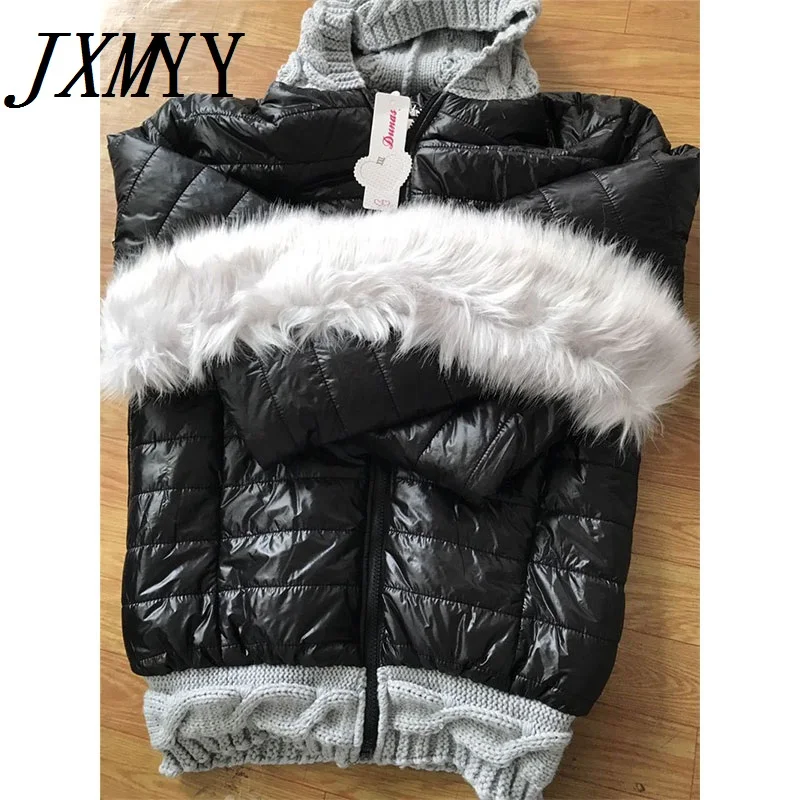 JXMYY размера плюс 4XL женская зимняя куртка Вязаная Шерстяная Шапка Лоскутная куртка осенне-зимнее пальто Верхняя одежда 2021