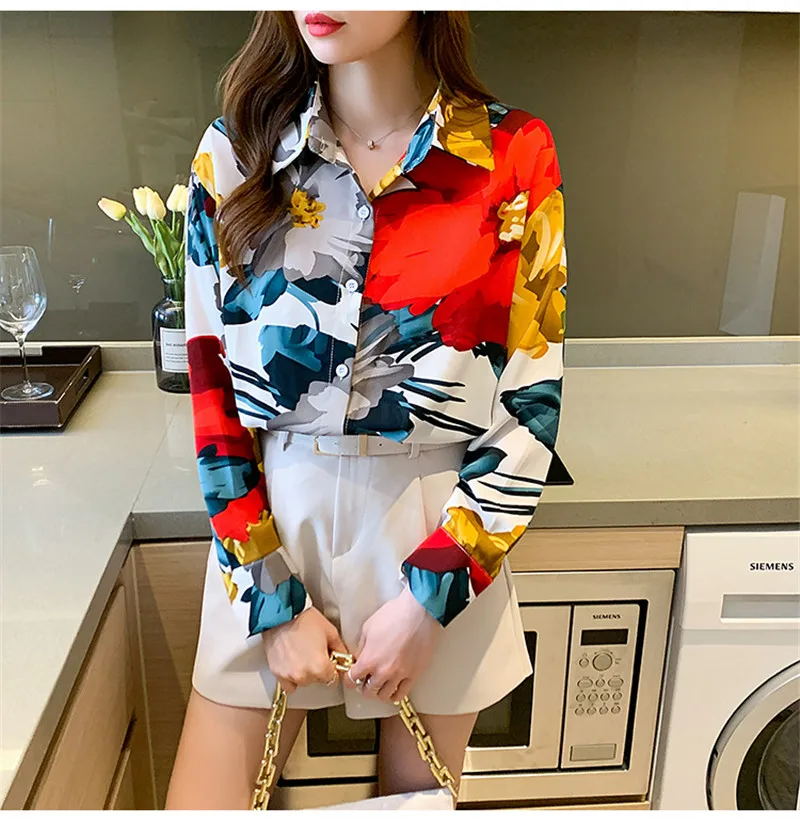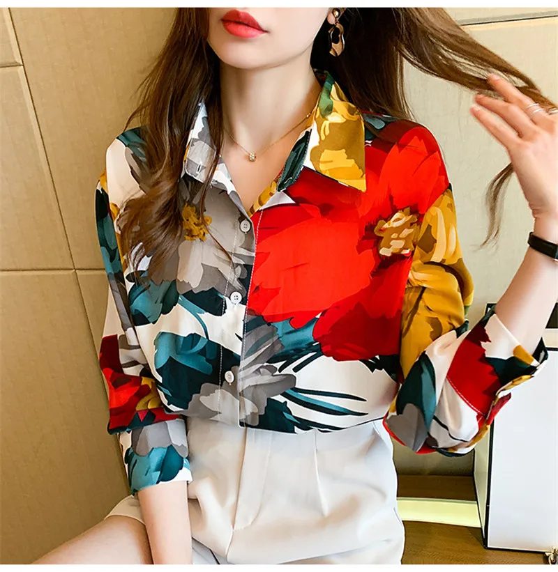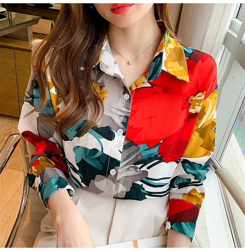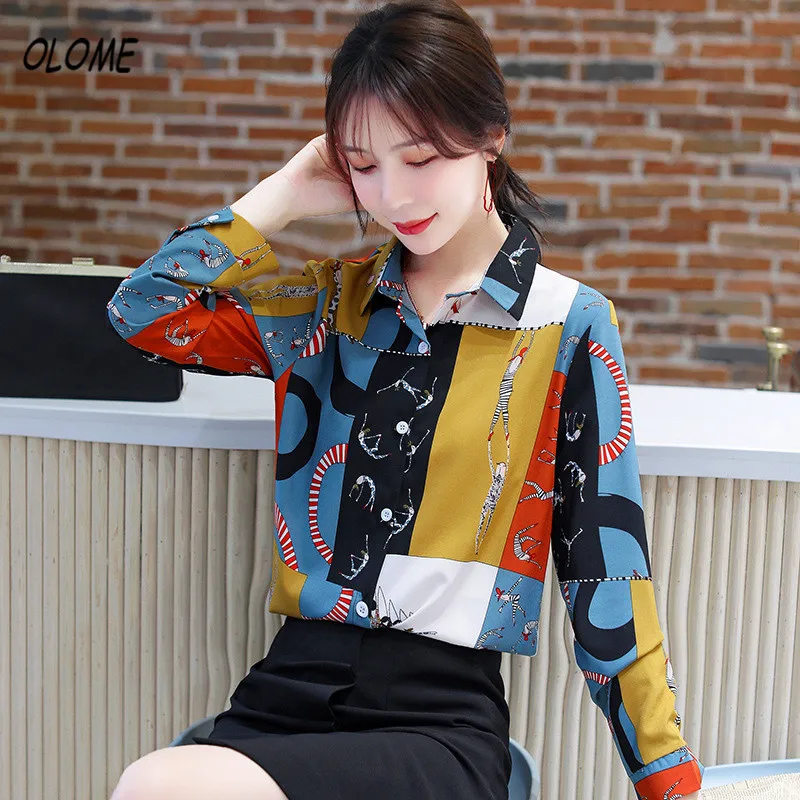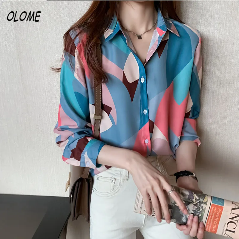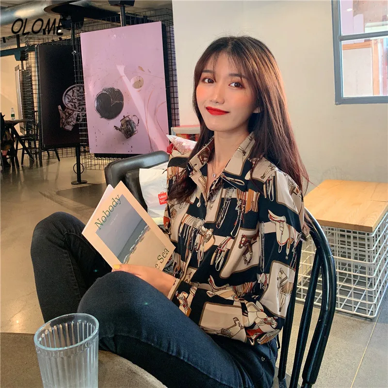 Женские блузки в Корейском стиле, женские топы на весну и осень, рубашка с принтом, уличная одежда в стиле Харадзюку
