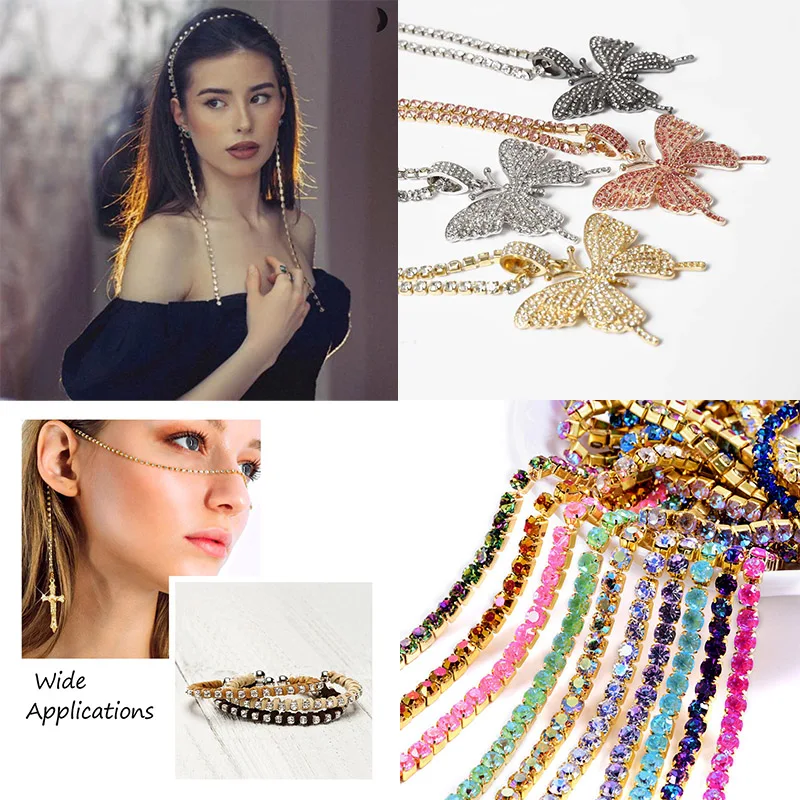 Это очень роскошные стразы, стразы AAAAA, очень четкие и блестящие, очень высококачественный материал. И высококачественная медная цепь, антиокислительная, антикоррозийная, немного дорогая, но очень качественная.