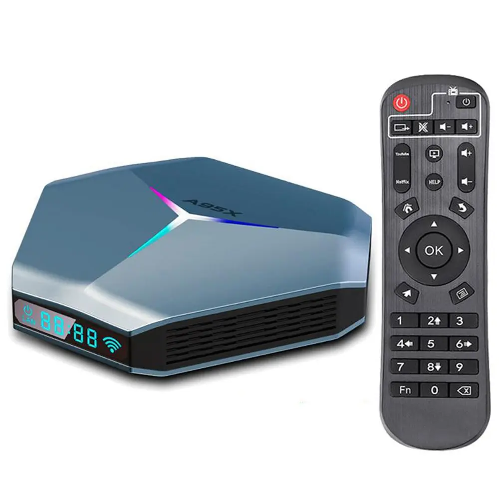 Приставка Смарт-ТВ A95X F4 Amlogic S905X4 Android 11 RGB светильник 4G 64 Гб 128 Гб двойной Wi-Fi 3D 8K Bluetooth Видеоплеер телеприставка
