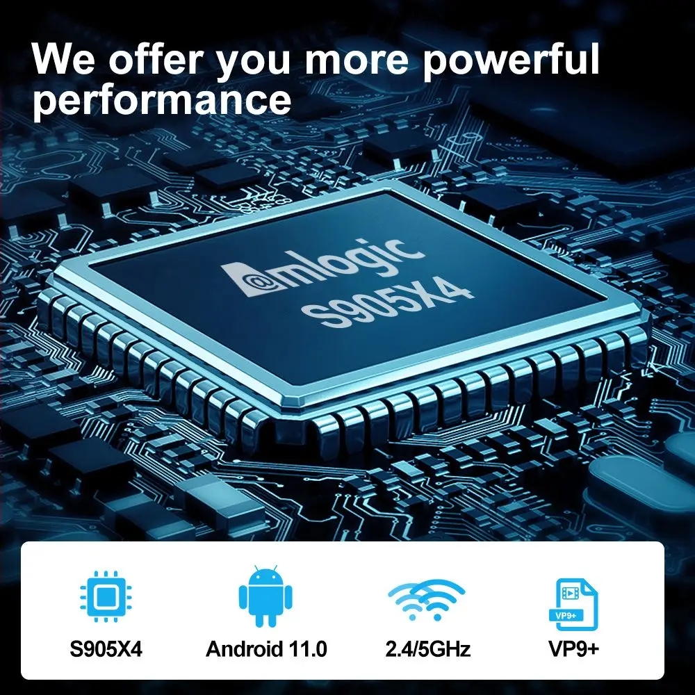 Последний ТВ-бокс в 2021, поддерживает разрешение 8/4K, наслаждайтесь суперчеткими изображениями и захватывающим эффектом просмотра. Технология декодирования H.265 экономит половину полосы пропускания, чем H.264, поэтому она может показать яркие и насыщенные детали изображения. 2/4GB Оперативная память 16/32/64/128 ГБ Встроенная память, большая емкость позволяет загружать больше приложений и игр в вашем ТВ коробка. Четырехъядерный процессор Amlogic S905X4 предназначен для плавной и гибкой работы, не беспокойтесь о проблеме медленной работы. Последняя Система Android 11,0 с открытым исходным кодом, вы можете наслаждаться всем, что вам нравится. Поддержка версии HDMI 2,1, удобно передавать фотографии, видео на экран телевизора. 2,4G/5G dual WIFI и bluetooth 4,1 подключение обеспечивает более стабильный беспроводной сигнал для вас, чтобы наслаждаться HD медиа и играть в игры. Поддержка s мыши и клавиатуры через usb-порт; Также поддержка 2,4 ГГц беспроводной мыши и клавиатуры через 2,4G USB ключ. Многоразовые сцены: офисная работа, Домашние развлечения, демонстрация встреч, школьное образование, цифровая реклама и т. д. Характеристики: Тип процессора: четырехъядерный ARM Cortex-A55 (Amlogic S905X4) Процессор Скорость: 2,0 ГГц GPU Тип: G31 GPU Объем оперативной памяти: 4 Гб Объем ПЗУ: 32 ГБ/64 Гб/128 ГБ WIFI модуль: IEEE 802,11 a/b/g/n/ac2.4G/5GH + BT4.1 Сеть Ethernet: RJ45 10/100 м Внешняя память: Поддержка SDSC/SDHC/SDXC Интерфейс USB: USB2.0x1 USB3.0x1 AV выход: 3,5 мм стандартный разъем Мощность: 5,5 мм Аудио/Видео выход: HD2.1 Аудиовыход: оптический Устройство ввода клавиатуры: usb-устройство Устройство ввода мыши: usb-устройство Стандартная конфигурация: 5,5 мм DC 5V @ 2A Версия операционной системы: Android 10 Декодер видео: AV1 MP-10@L5.1 до 4K x 2K @ 60fps, профиль VP9-2 до 8K x 4K @ 24fps, h.265 HEVC MP-10@L5.1 до 8K x 4K @ 24fps, AVS2-P2 профиль до 4K x 2K @ 60fps, H.264 AVC HP@L5.1 до 4K x 2K @ 30fps, h.264 MVC до 1080P @ 60fps, MPEG-4 ASP @ L5 до 1080P @ 60fps (ISO-14496), WMV/VC-1 SP/MP/AP до 1080P @ 60fps, AVS-P16(AVS +) /AVS-P2 профиль JiZhun до 1080P @ 60fps, MPEG-2 MP/HL до 1080P @ 60fps (ISO-13818), MPEG-1 MP/HL до 1080P @ 60fps (ISO-11172), realVideo 8/9/10 до 1080P @ 60fps Аудио декодер: поддерживает MP3, AAC, WMA, RM, FLAC, Ogg и программируется с 7,1/5,1 вниз-смешивание Посылка: 1 * Smart TV Box 1 * HDMI кабель 1 * Адаптер питания 1 * пульт дистанционного управления 1 * руководство на английском языке