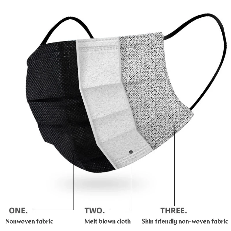 2-200 шт. одноразовые маски черная маска для взрослых из 3 слоев фи...