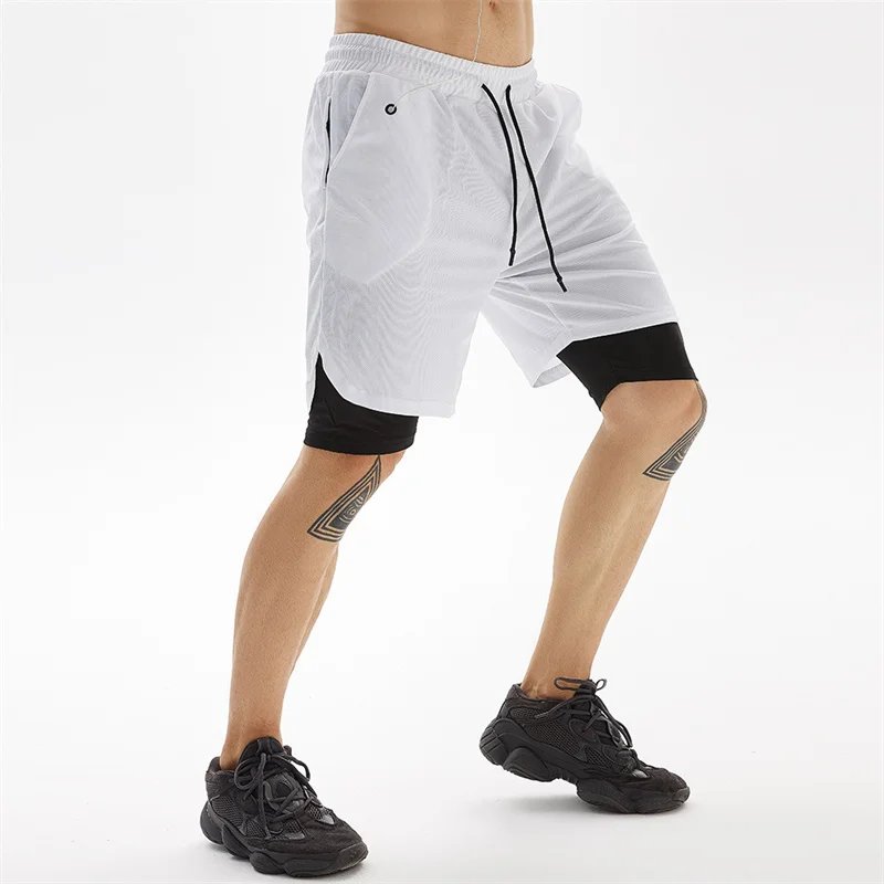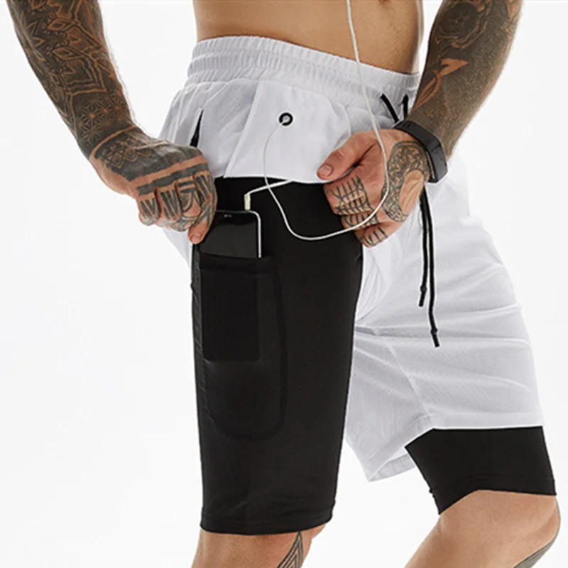 2021 мужские модные шорты с дырками и гарнитурой 2 в 1, быстросохнущие спортивные короткие брюки