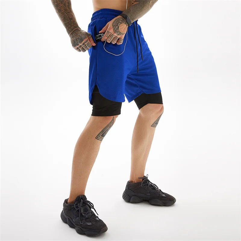 Мужские шорты 2-в-1 для бодибилдинга, тренировок, легкие двухслойны...