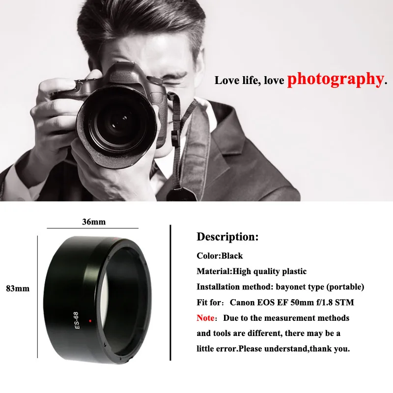 ES68 ES-68 бленда для объектива камеры предотвращает воздействие для Canon EOS EF 50 мм F/1,8 STM 49 мм защита объектива аксессуары для камеры