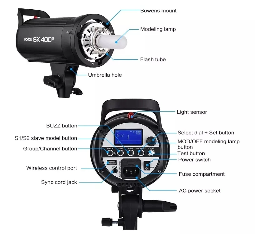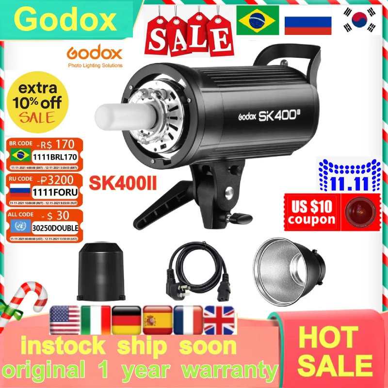 Godox SK400II 400Ws GN65 профессиональная студийная вспышка для фотостудии прямая трансляция youtube tiktok творческая съемка SK400 обновление