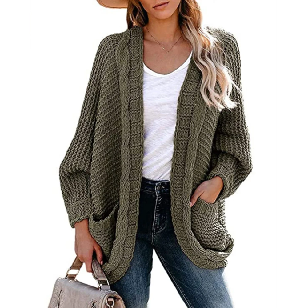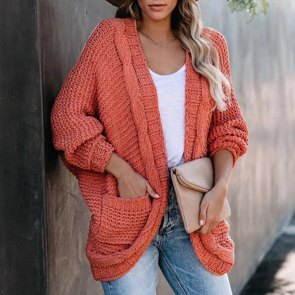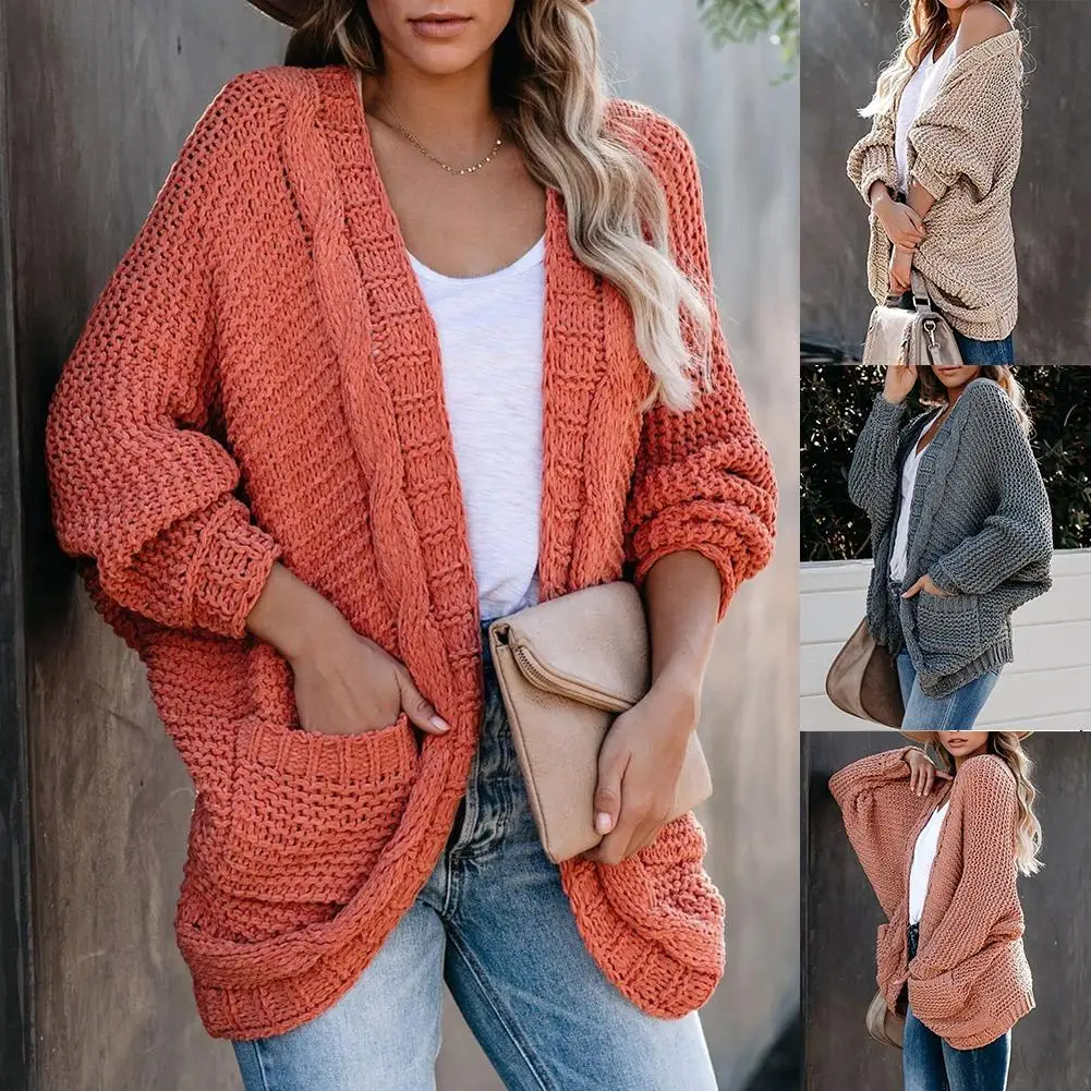 Женский кардиган, осенне-зимний Кардиган с открытым спереди, свитера для женщин, свободный однотонный вязаный свитер, пальто, верхняя одежда