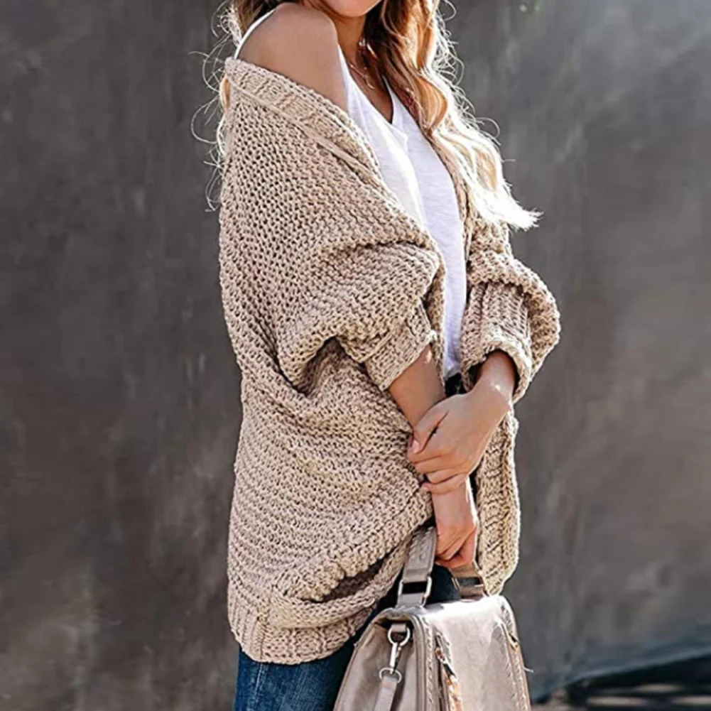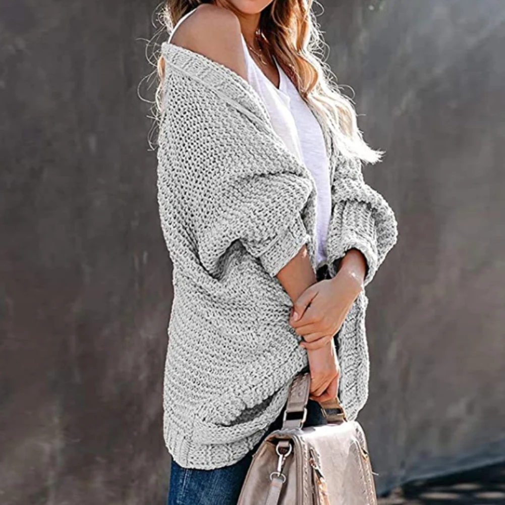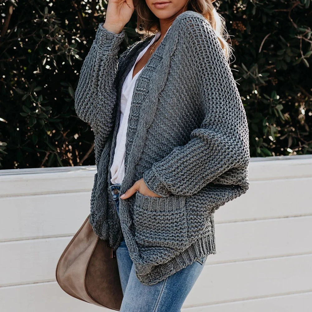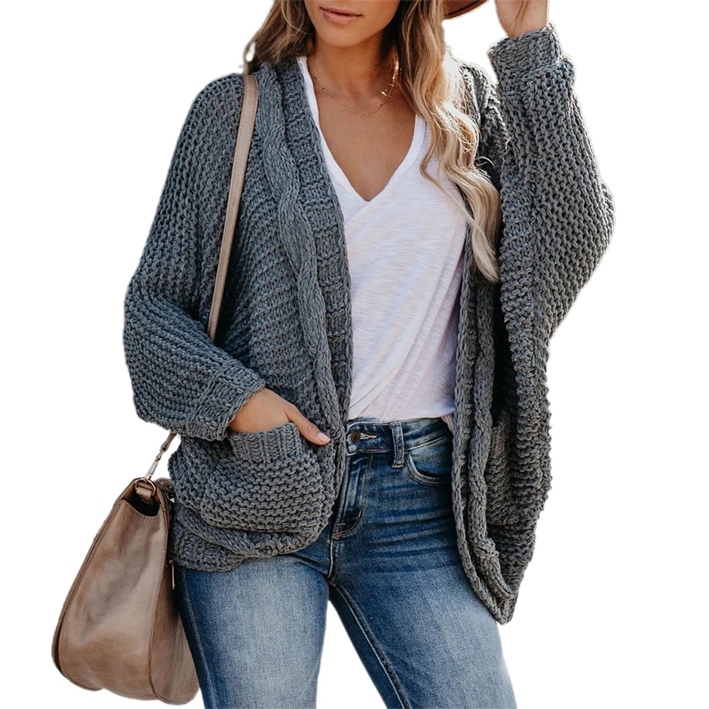 Женский кардиган, осенне-зимний Кардиган с открытым спереди, свитера для женщин, свободный однотонный вязаный свитер, пальто, верхняя одежда