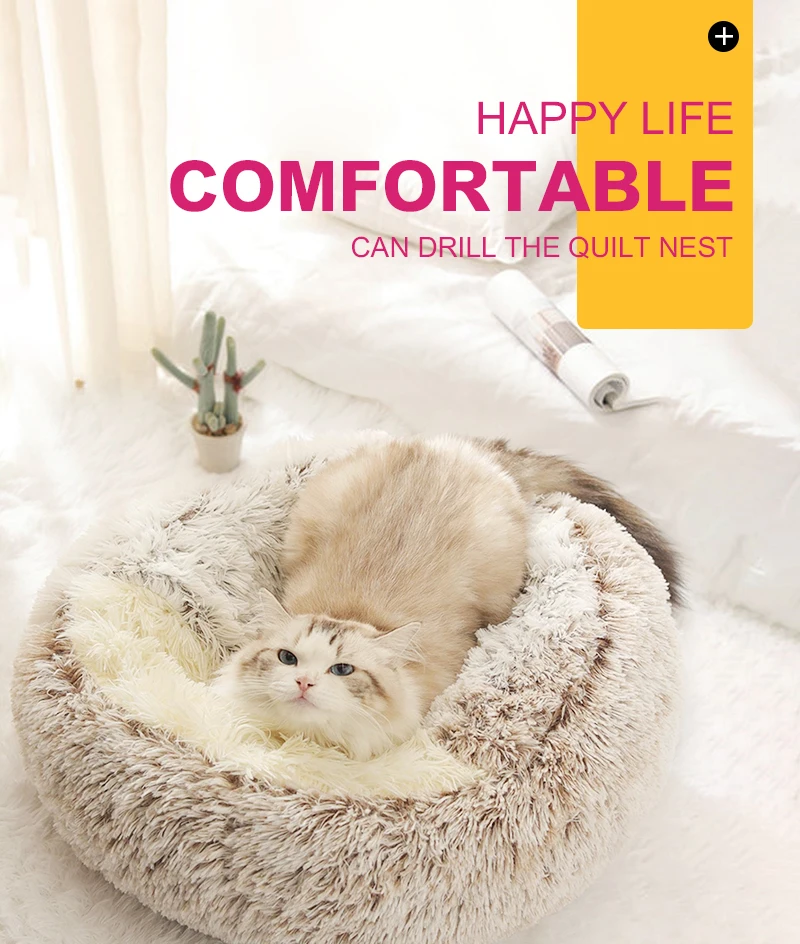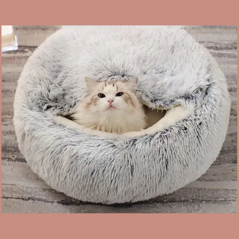 Длинная плюшевая кровать для домашних животных, теплая мягкая кровать 2 в 1, для маленьких собак, кошек, зимний коврик для щенков