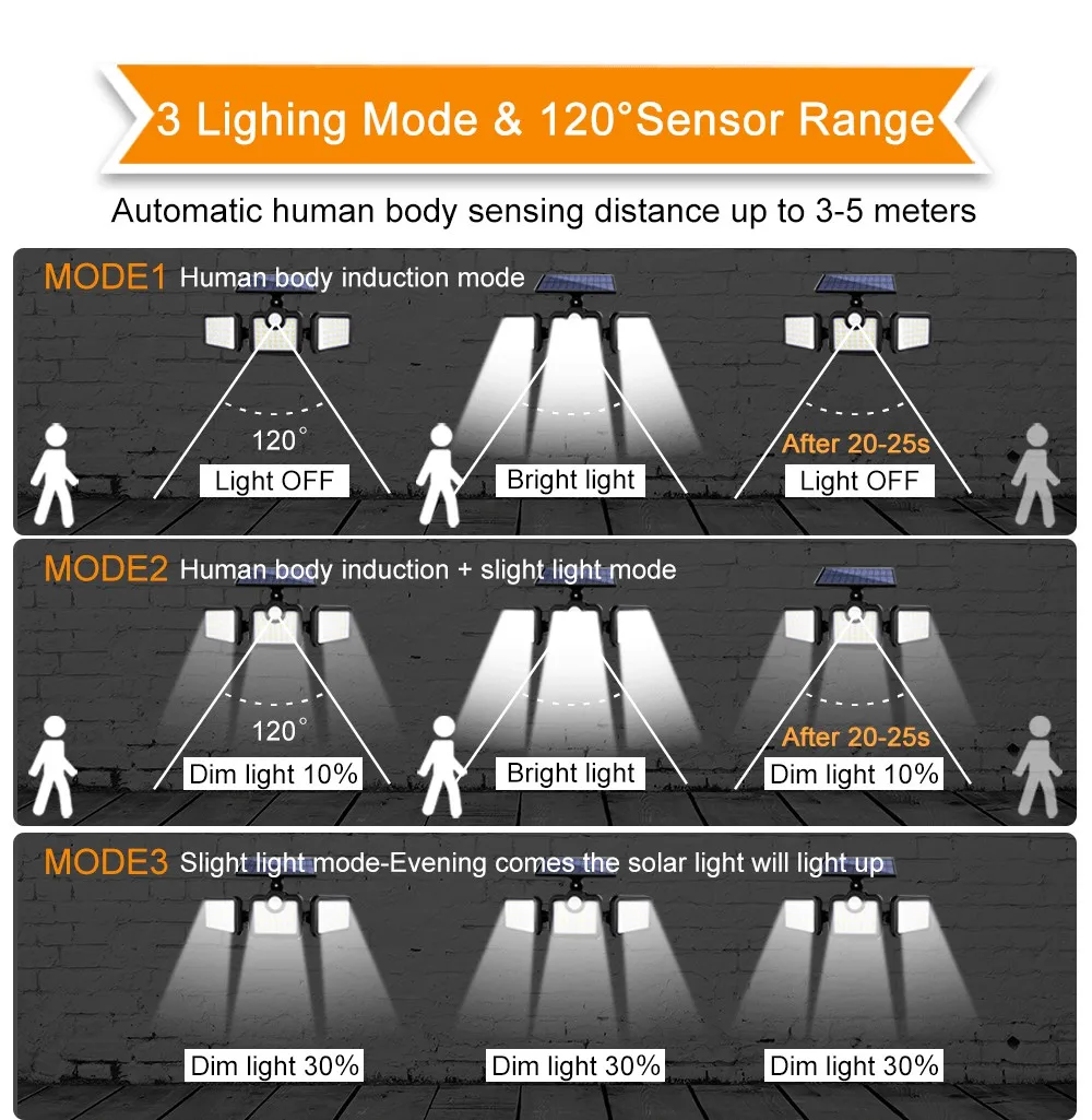 -1: режим безопасности (датчик движения автоматически включается и выключается светильник)-2: умный режим управления яркостью (светильник остается на всю ночь, он становится ярче при обнаружении движения и превращается в 10% яркости, когда люди уходят)-- 3: Нет индукционного режима (30% яркость постоянный светильник).