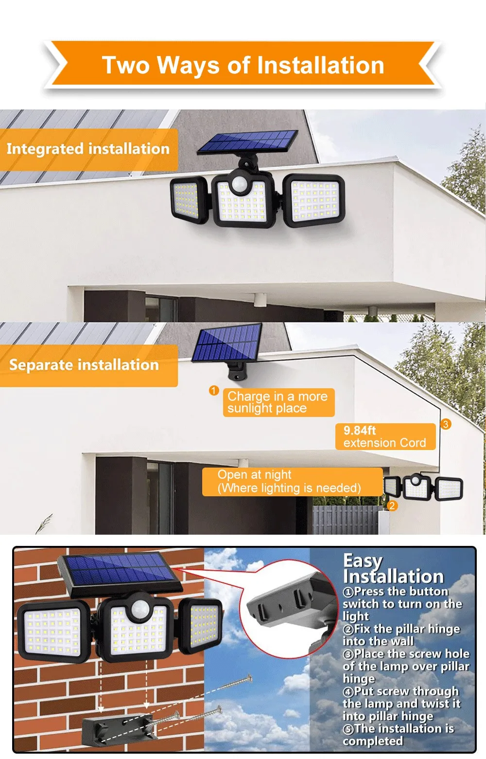 Googor лампа на солнечной батарее с датчиком движения оснащена 108 супер яркий светодиодный свет. Наша солнечная панель с модернизированным поликристаллическим кремнием до 20.5% коэффициента конверсии.