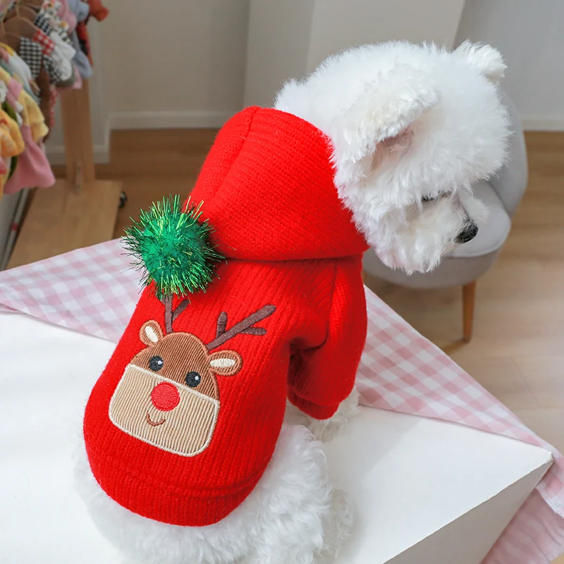 Одежда для собак PETCIRCLE, свитшот с рождественским оленем для пары, свитер с капюшоном, подходит для маленьких собак, щенков, домашних животных, кошек, милый зимний костюм для домашних животных, одежда