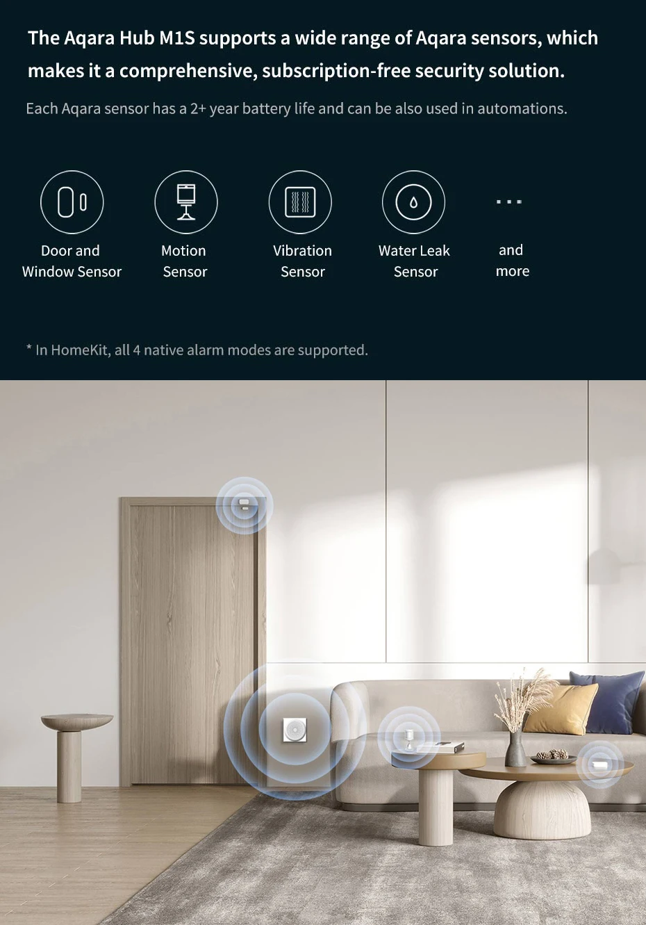 Обнаруживает, открывается ли окно или дверь в режиме реального времени. · Peel & Stick · триггеры Aqara Hub сигнализация и Push-уведомление · 2 года работы от аккумулятора