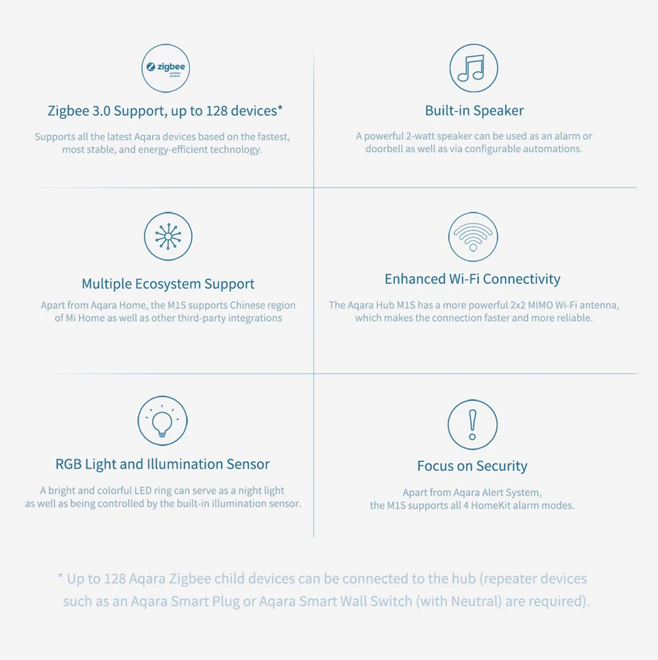 Примечание:Шлюз можетРабота с беспроводным переключателем aqara, влажности aqara, окошком aqaraДатчик, датчик воды aqara, датчик удара aqara, беспроводная однокнопочная aqara, aqaraБеспроводная двойная кнопка, настенный выключатель с одной кнопкой, настенный переключатель с двойной кнопкой. *Умные аксессуары до 32 Aqara могут быть подключены к ступице.