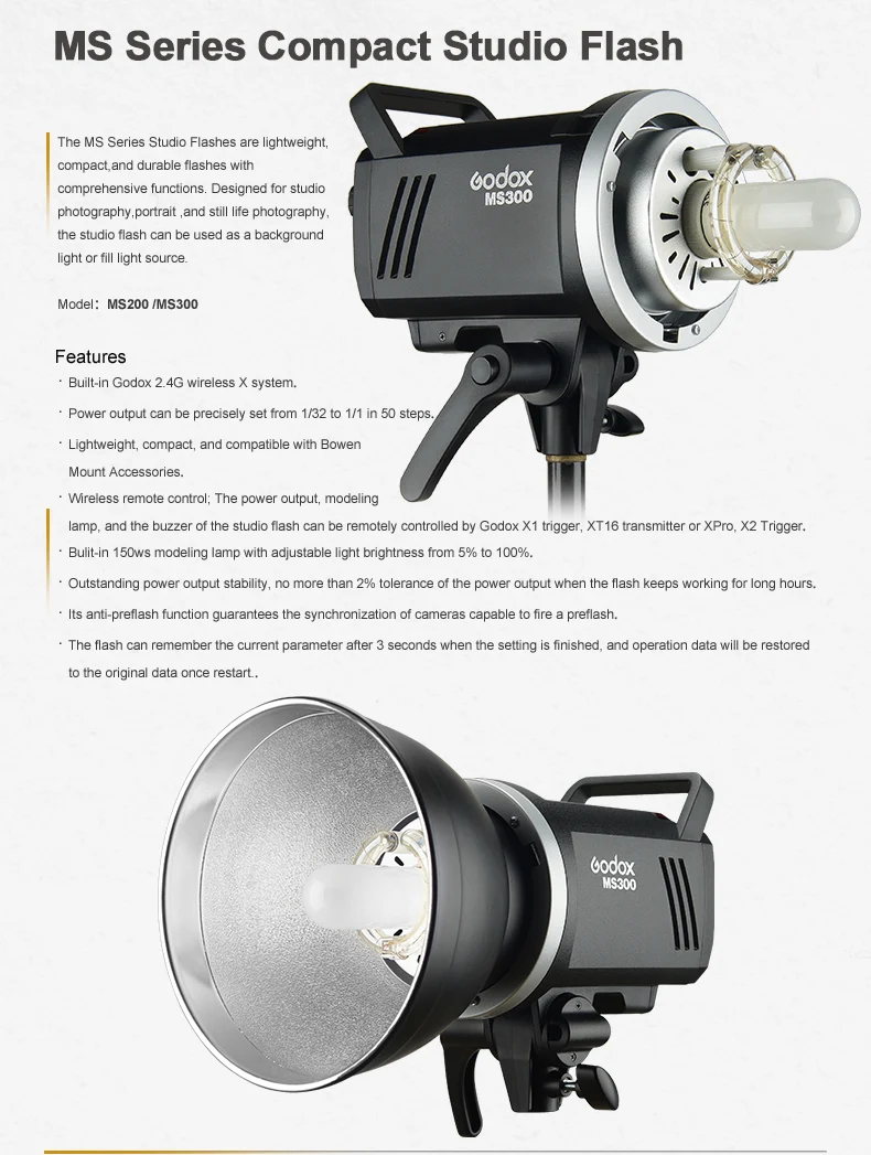 Godox MS200 200 Вт или MS300 300 Вт 2,4G встроенный беспроводной приемник легкий компактный + прочный крепление Bowens студийная вспышка