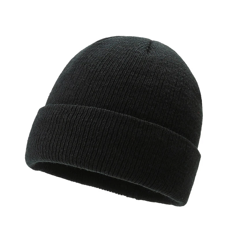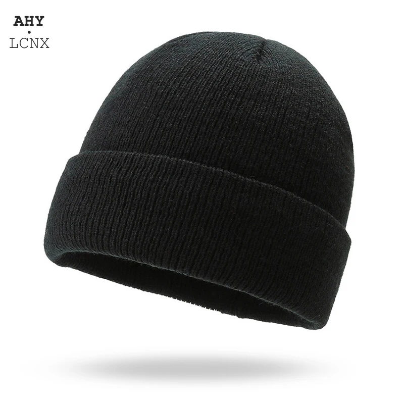 Новинка 2021, корейская модная зимняя плотная теплая вязаная шапка с бархатным утеплителем сплошного цвета, черные женские и мужские повседневные облегающие шапки, мягкая шапка, хлопковая шапка